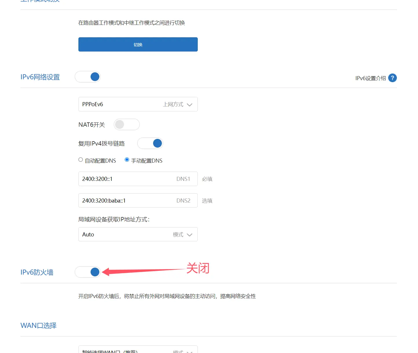 这步是基于已经改完桥接之后的操作了,进路由查看路由拨号获取的 ip 地址,如果我们获取的 ipv4 地址和在百度上搜出来的 ip 一样,就可以确定 ipv4 是公网,ipv6 就很简单,240 开头基本都是