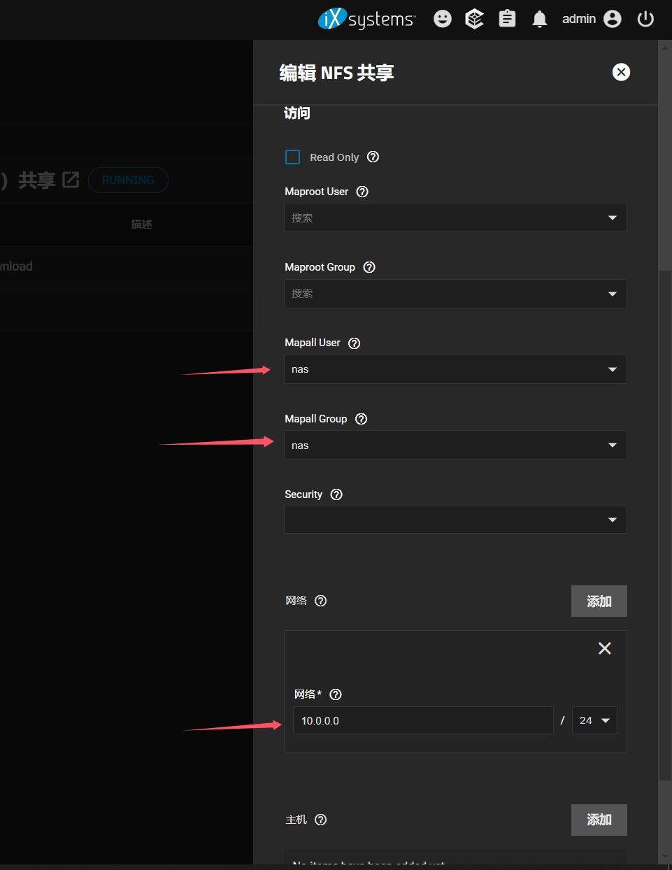 truenas 下创建 nfs 共享基本流程和 smb 一致,并且 nfs 可以正常挂载,但无法正常写入